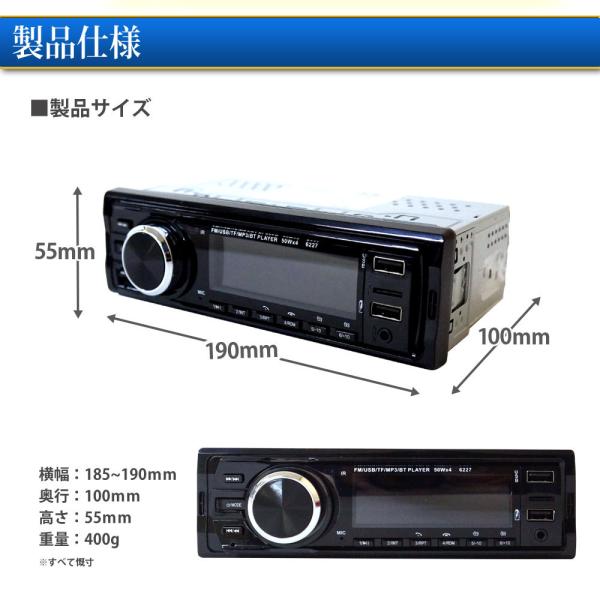 1DIN カーオーディオプレーヤー MP3プレーヤー Bluetooth ブルートゥース USBメモリ SDカード AUX DC12V 送料無 616AF