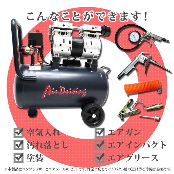 エアーコンプレッサー 静音型 すぐ使える最強エアーツール付 30L