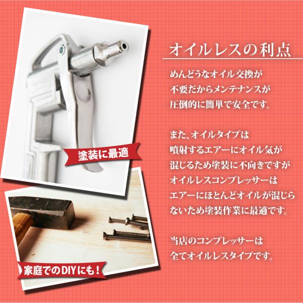 ・エアーにオイルが混ざることがなくクリーンなエアーが出ます。