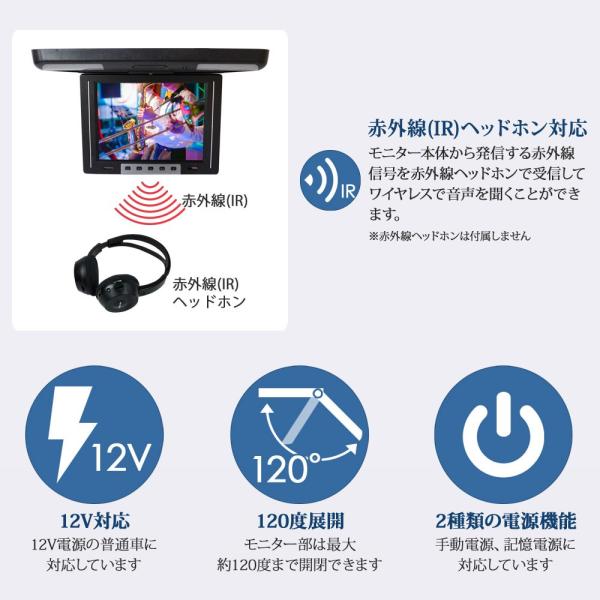 12.1インチ フリップダウンモニター 12V IR 画面 角度調整 120度 リモコン付 送料無 F1220