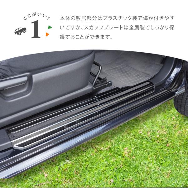 ・車のドアの敷居部分を保護するジムニー専用のスカッフプレートです。