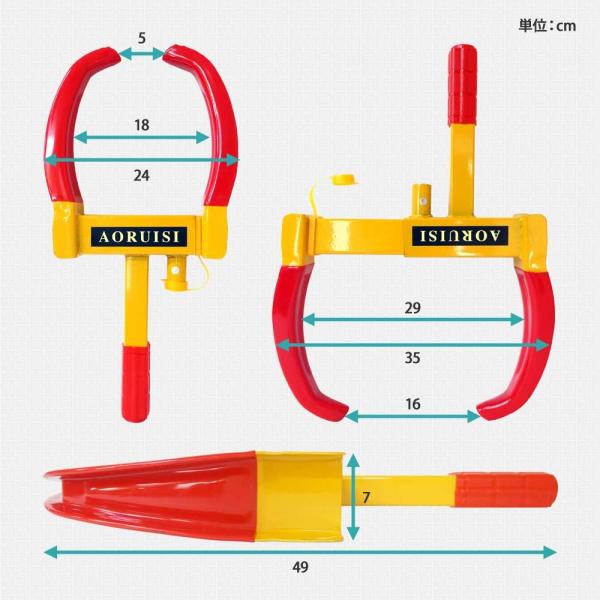 ・自動車やバイクのタイヤに挟んでロックするだけ。わずか2ステップで盗難対策ができます。