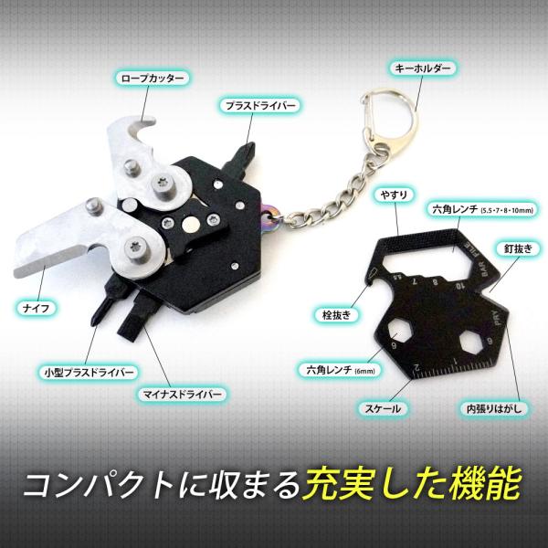 マルチツール キーチェーン ヤスリ 栓抜き スケール