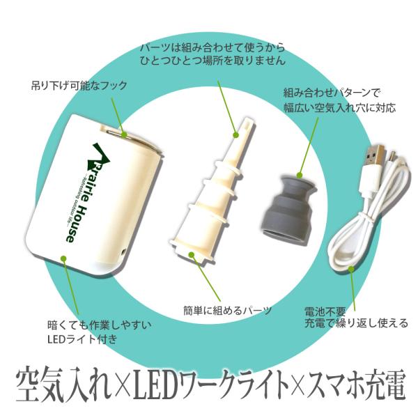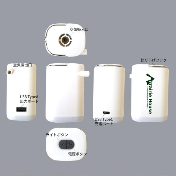 Prairie House ミニエアーポンプ 電動 空気入れ 電動ポンプ 2400mAh スマホ充電 USB充電 LEDライト 空気入れ 空気抜き 送無 XO848