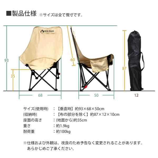 キャンプチェア リクライニング リクライニングチェア アウトドア フォールディングチェア 折りたたみチェア 椅子 イス Prairie House 送料無料 XO852