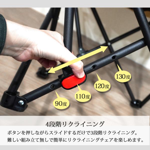 ・4段階(90度・110度・120度・130度)でリクライニングできます。