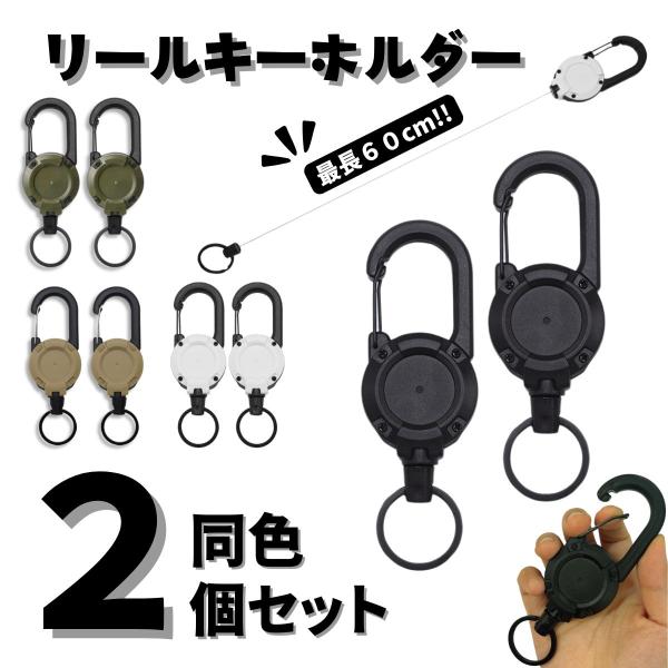 リールキーホルダー 2個セット 伸びる 強力 カラビナ式ピンオンリール キーリール 金属ワイヤー 最長60cm キーチェーン 伸びる 丈夫 紛失防止 キーリール