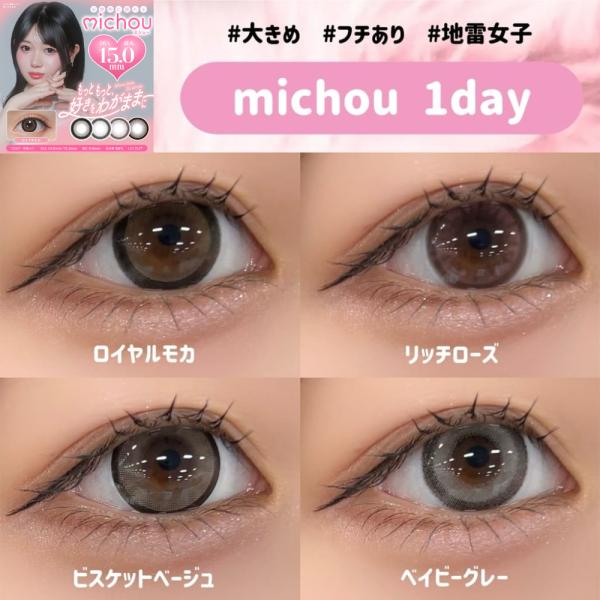 michou ミシュー カラコン ワンデー 度あり 度付き 度なし 地雷系 ピンク ブラウン グレー ブラック ベージュ 1day 10枚入り UVカット
