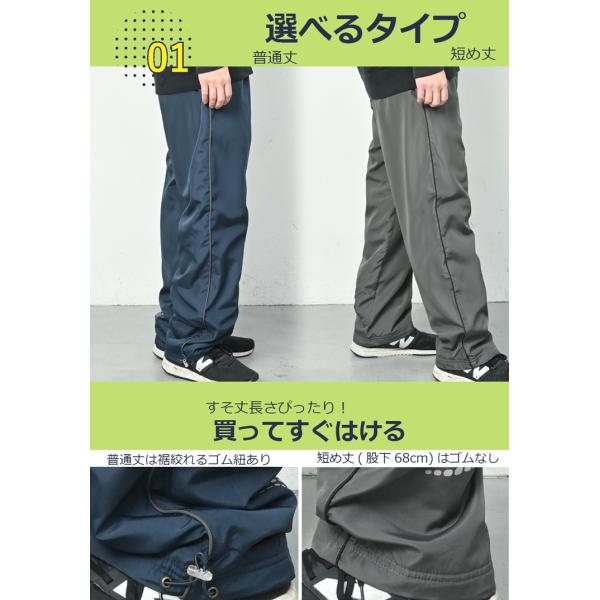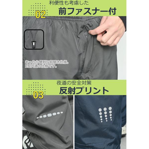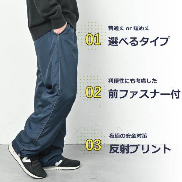 [ 裏フリース ライン入り 前ファスナー付き シャカシャカ 防寒パンツ の詳細説明]
