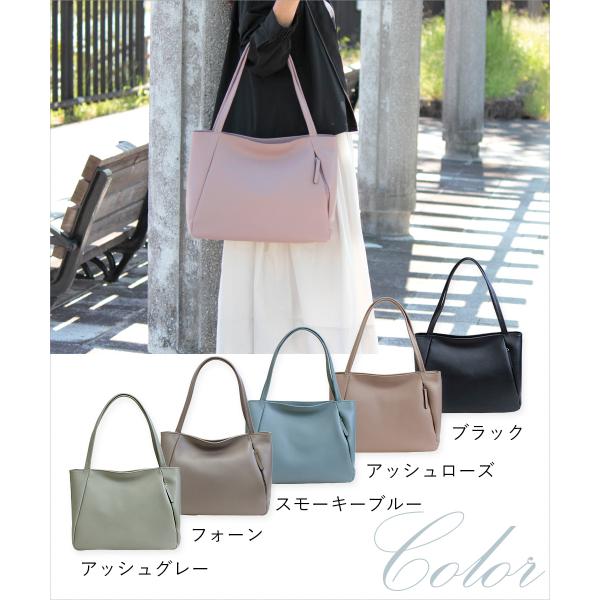 A4サイズがしっかり収まり、オフィスでもプライベートでも使いやすい、優しさいっぱいのトートバッグです。