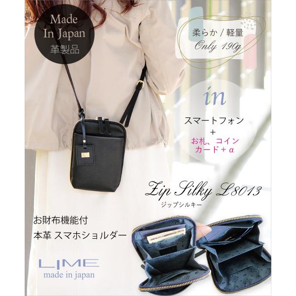 お財布ショルダー スマホショルダー 本革 スマホポシェット ショルダーバッグ レディース 小さめ スマホ ポーチ 縦 軽量 日本製 軽い LIME L8013 爆買