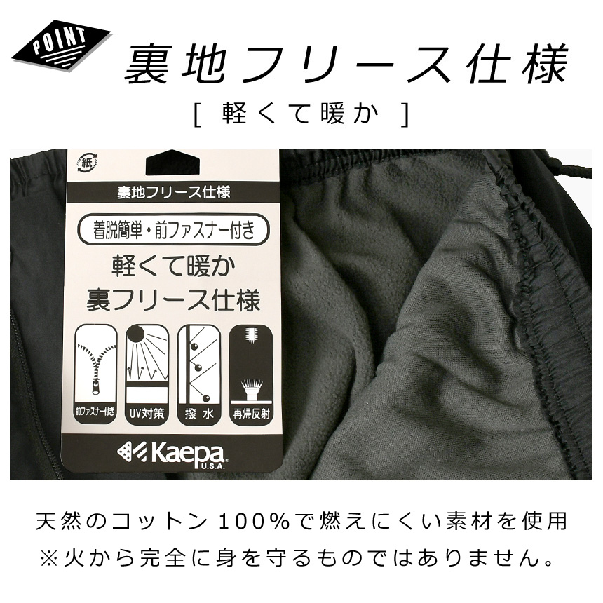 Kaepa ケイパ 裏フリースパンツ メンズ 前開き あったかパンツ 秋 冬 撥水 防寒 UVカット リフレクター セットアップ可能 【2A1-1525】 送料無料 通販A3