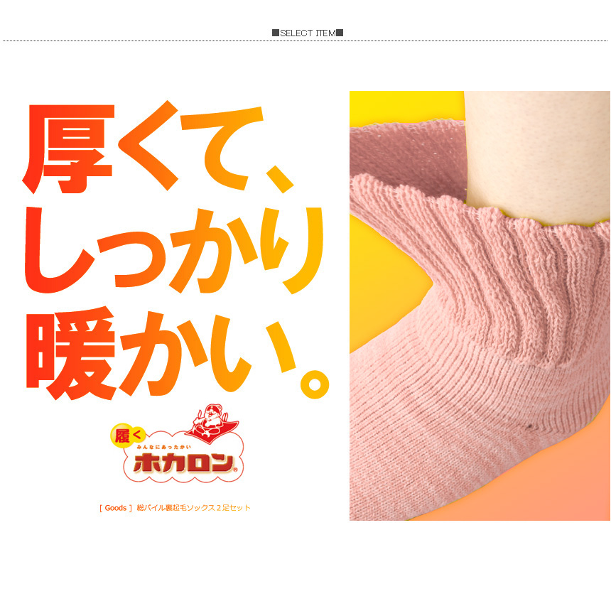 足を優しく、温かく包み込む、寒い季節に心強いぽかぽか靴下です。