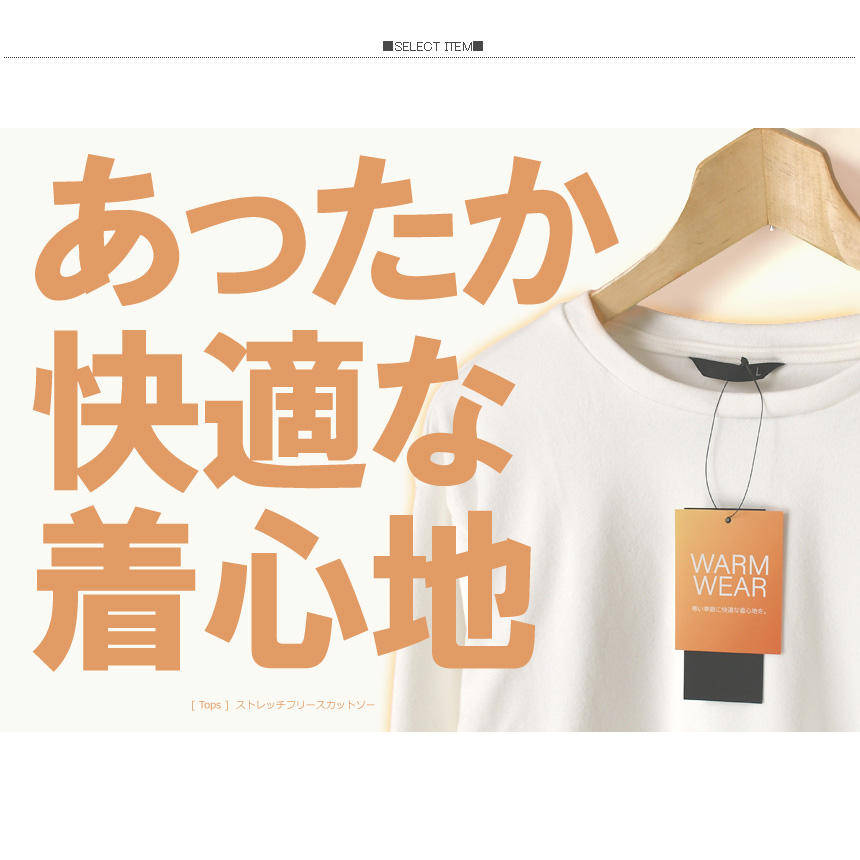動きやすく暖かい ストレッチフリースカットソー メンズ M L LL