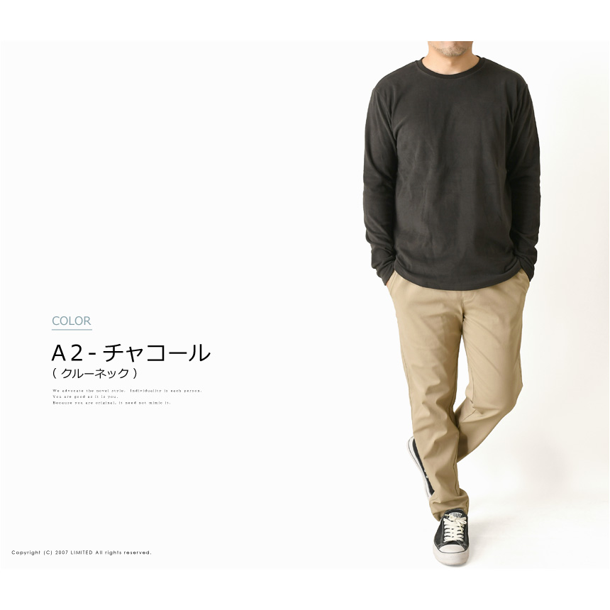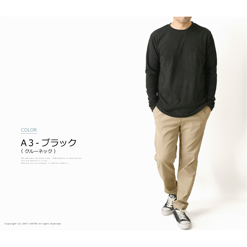 ストレッチ フリース カットソー メンズ インナー 薄手 クルーネック ハイネック タートルネック 伸縮 保温 秋 冬 あったか 防寒 【A1-1514】 送料無料 通販A3