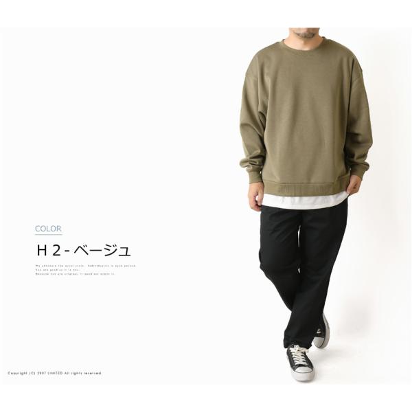 レイヤード スウェット ビッグ トレーナー メンズ ビッグシルエット 裏起毛 無地 スエット 裏フリース くすみカラー ユニセックス 【RQ-331】 送料無料 通販A3