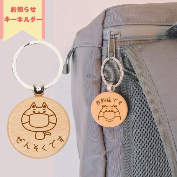 \ お知らせ キーホルダー / 花粉症 喘息 ぜんそく 木製 4cm 表面のみ 子供 子ども 男の子 女の子 通勤 通学 バック ランドセル 花粉症です ぜんそくです