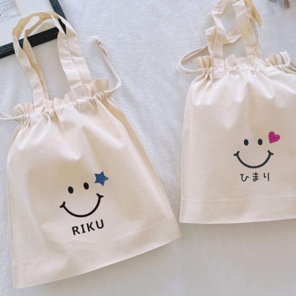 【 名入れ 巾着 スマイル 】 巾着袋 名前入り 名入り 男の子 女の子 プレゼント 出産祝い 小物入れ ポーチ 体操服入れ 給食袋 着替え袋 体操着袋 幼稚園 保育園