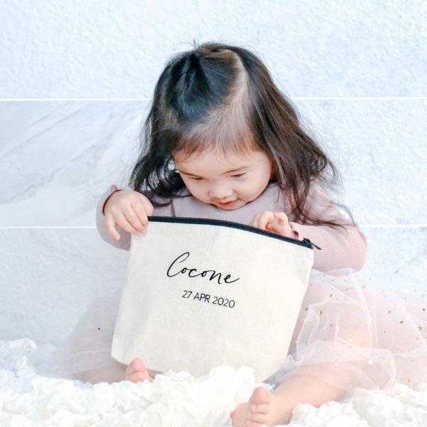 \ 名入れ / おむつポーチ 筆記体 フェアトレード オーガニックコットン 化粧ポーチ 出産祝い 男の子 女の子 ベビーギフト シンプル おしゃれ プレゼント