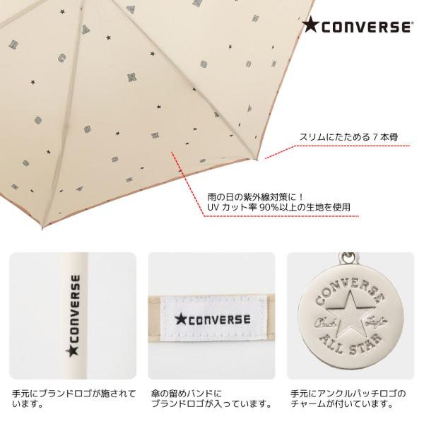 CONVERSE コンバース レディース ブランド 星柄 雨傘 60cm 長傘 かさ 雨具 おしゃれ ワンタッチ 黒 ベージュ 水色 グレー