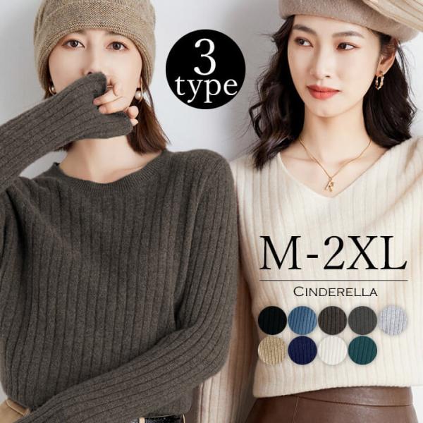 ニット レディース カジュアル トップス Uネック Vネック ハイネック チクチクしない リブニット 秋 冬 秋冬 春 長袖 リブ シンプル 無地 防寒 暖かい yctops25