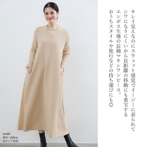 マキシ丈ワンピ ワンピース マキシ丈 ロングワンピース ロング丈 ロングワンピ 秋 春 夏 冬 レディース 女性 半袖 長袖 袖あり クルーネック シンプル エンボス 黒 灰色 茶色 10代 20代 30代 40代 50代 シンプル 無地 プチプラ 9号 11号 M L rt0198