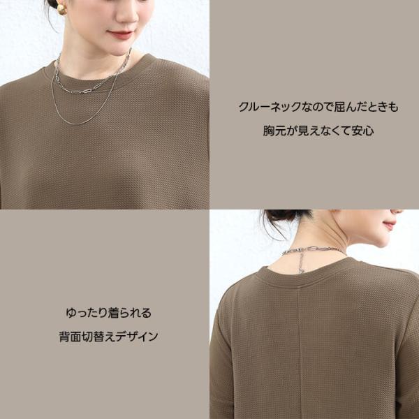 ロングTシャツ レディース 長袖 ワッフル カットソー Tシャツ 凸凹 ゆったり 大きいサイズ 体型カバー 無地 クルーネック カジュアル お尻が隠れる 無地 rt3092