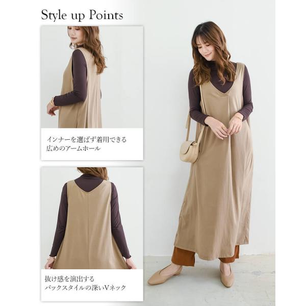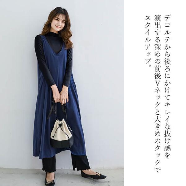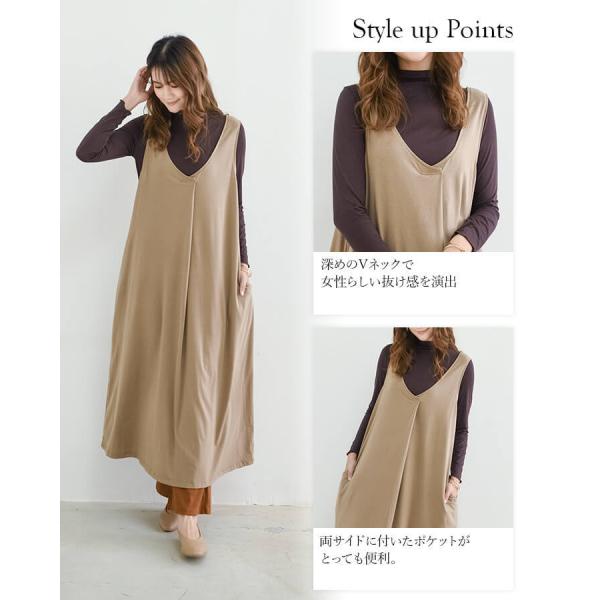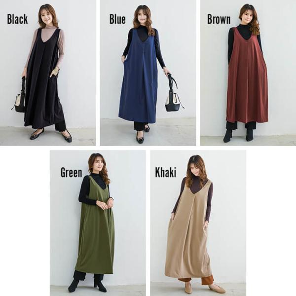 レディース ワンピース ロングワンピース カットワンピース ジャンパースカート ジャンバースカート ジャンスカ Vネック 前後Vネック ノースリーブ ロング丈 タック Aライン 無地 ロング カットソー生地 ポンチ レイヤード 重ね着 おうちで洗える 春 夏 秋 冬 オールシーズン カジュアル 服装 10代 20代 30代 40代 50代 60代 旅行 かわいい きれいめ モード レトロ ナチュラル ニュアンス Mサイズ Lサイズ LLサイズ 体型カバー 大きいサイズ 緑 黒 茶色 モカ シンプル