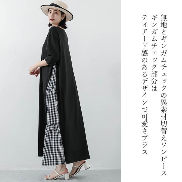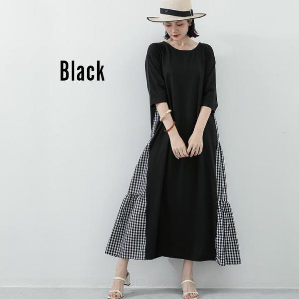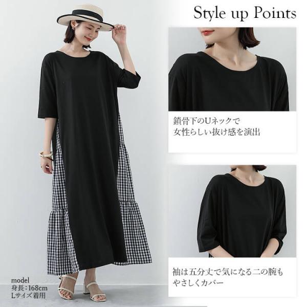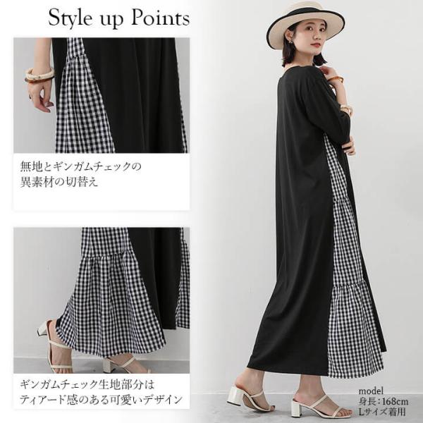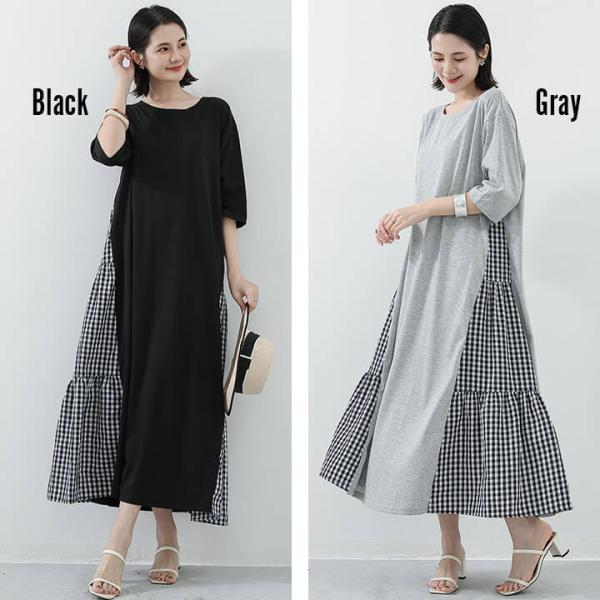ワンピース ロング 長袖 五分袖 ロンT カジュアル 大人 体型カバー 二の腕カバー 大きめ 大きいサイズ おしゃれ かわいい 10代 20代 30代 40代 50代 60代 服装 ロングワンピース マキシワンピース 無地 ギンガムチェック 異素材 ティアード 上品 Uネック 細見え スリム マキシ丈 マキシ 長め ワンピ ゆったり オーバーサイズ フレア チェック チェック柄 くすみカラー 春 夏 秋 黒 灰色 M L XL 安い 個性的