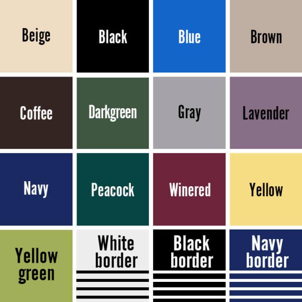 ■色:ベージュ ブラック ブルー ブラウン コーヒー ダークグリーン グレー ラベンダー ネイビー ピーコック ワインレッド イエロー イエローグリーン ホワイトボーダー ブラックボーダー ネイビーボーダー