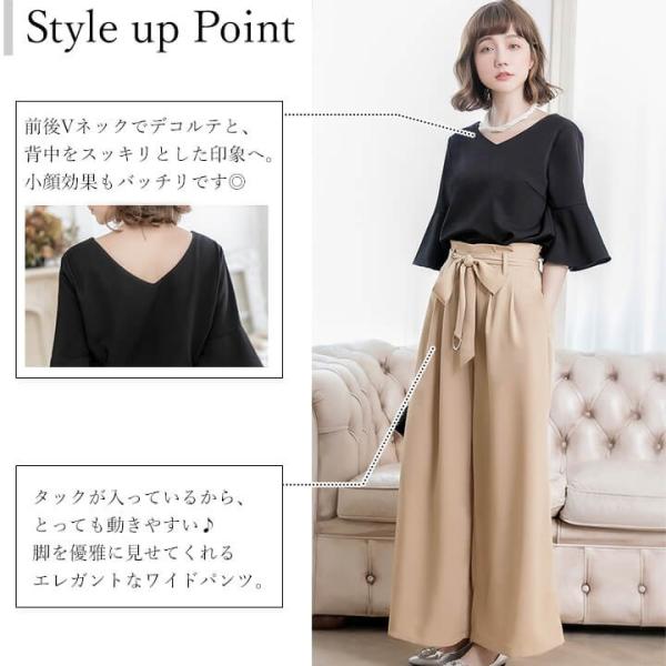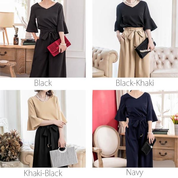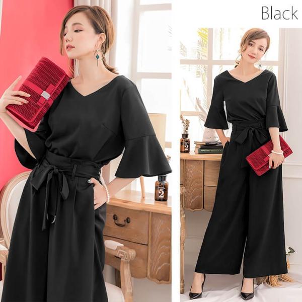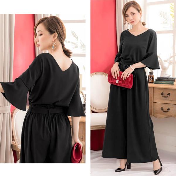 パンツスーツ セットアップ レディース ドレス パンツドレス パンツ 長袖 Vネック オケージョン