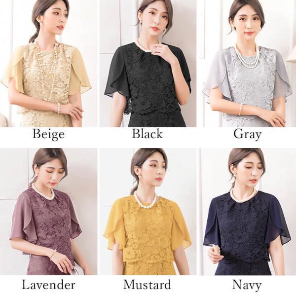 レースが上品なミディアムドレス。