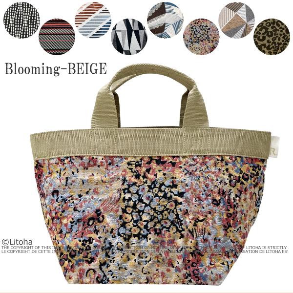 幾何学柄の織り生地を使用したおしゃれトート。