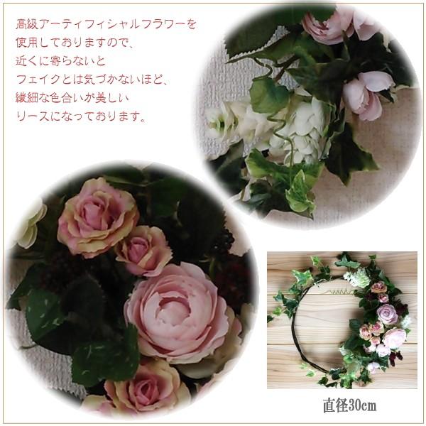 ギフト アーティフィシャルフラワー ローズとミニローズ リース アートフラワー 30cm 造花 花 フラワー m-142