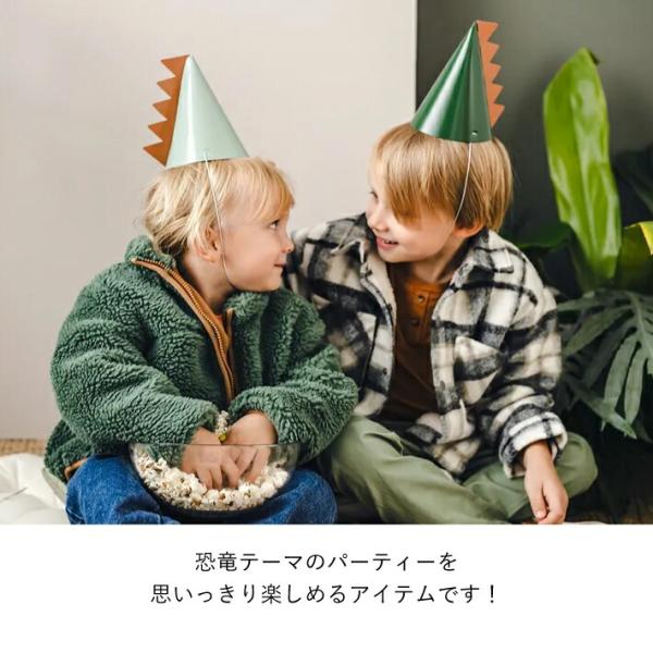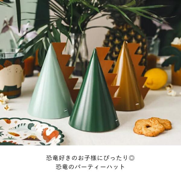 パーティーハット 恐竜 6個入り グリーン カーキ ダイナソー パーティーアイテム 誕生日 バースデー パーティー ハット 三角帽 被り物