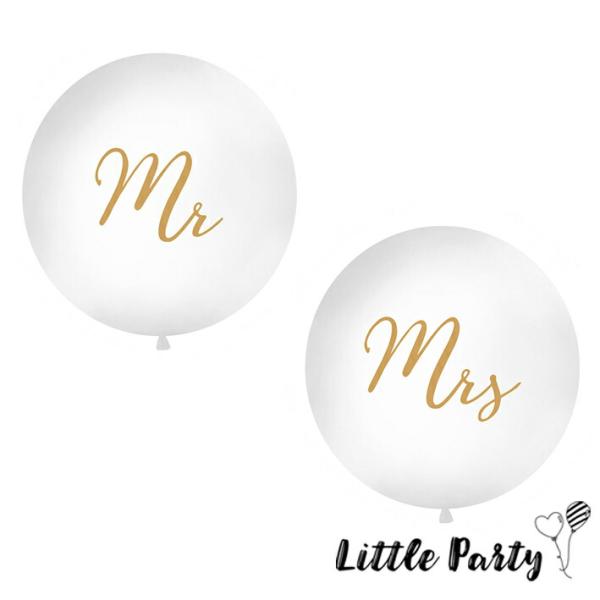 バルーン Mr&Mrsジャイアントゴールド 丸型 100cm パステルホワイト ビッグラウンドwedding ウエディング 前撮り 結婚式 風船