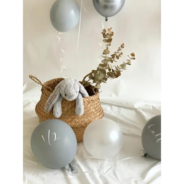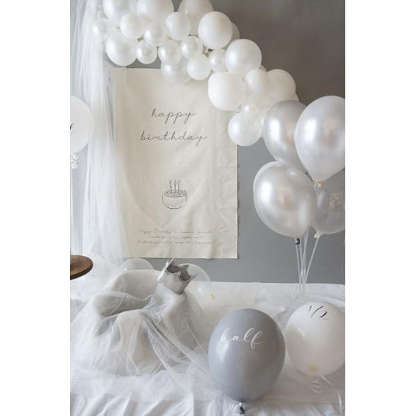 ハーフバースデーにぴったりな"half"と"1/2"の筆記体文字入りメッセージバルーン。