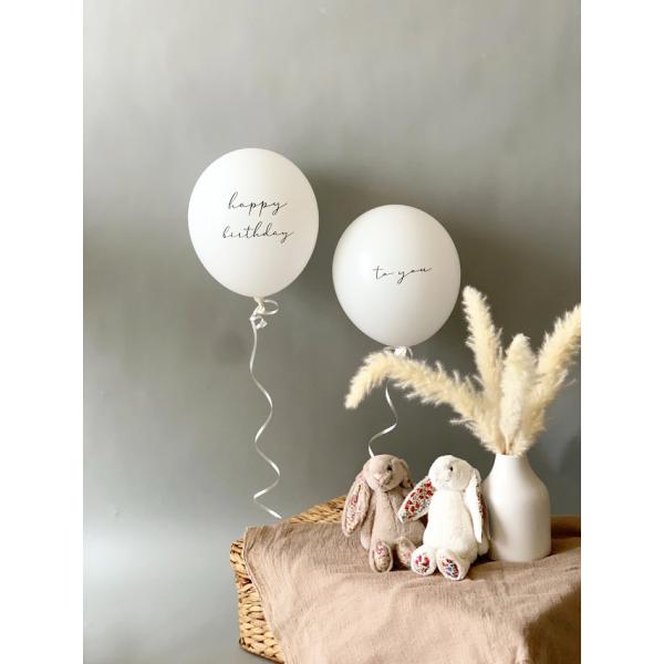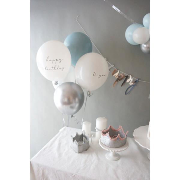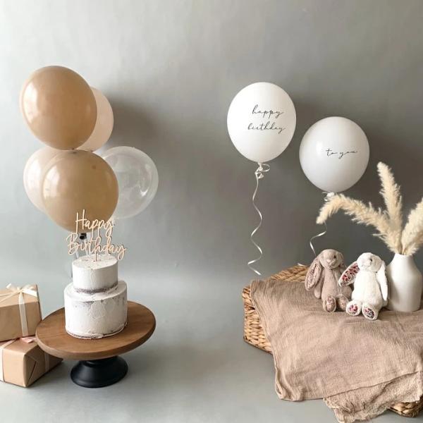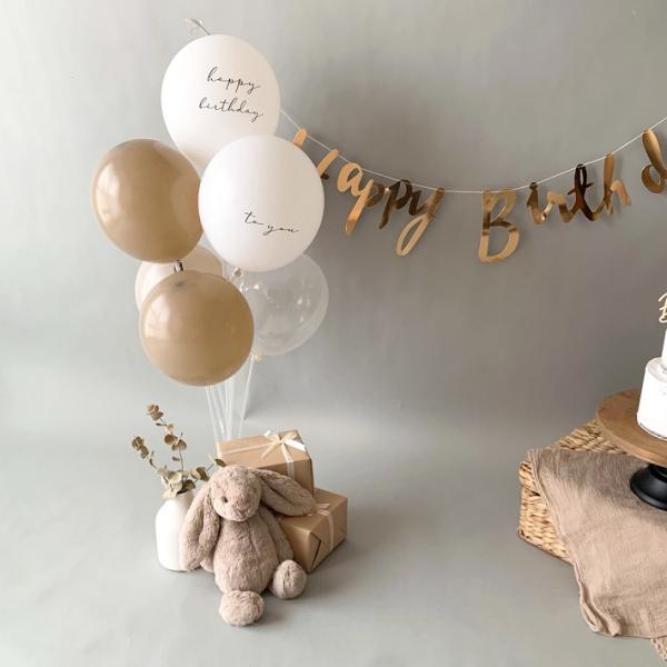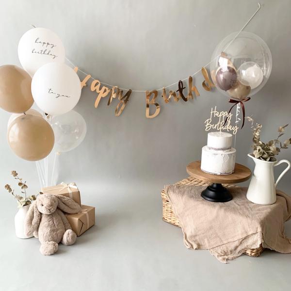 お誕生日に欠かせないHappy Birthdayの筆記体文字入りバルーン。