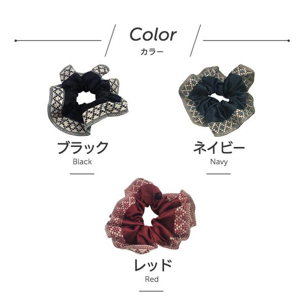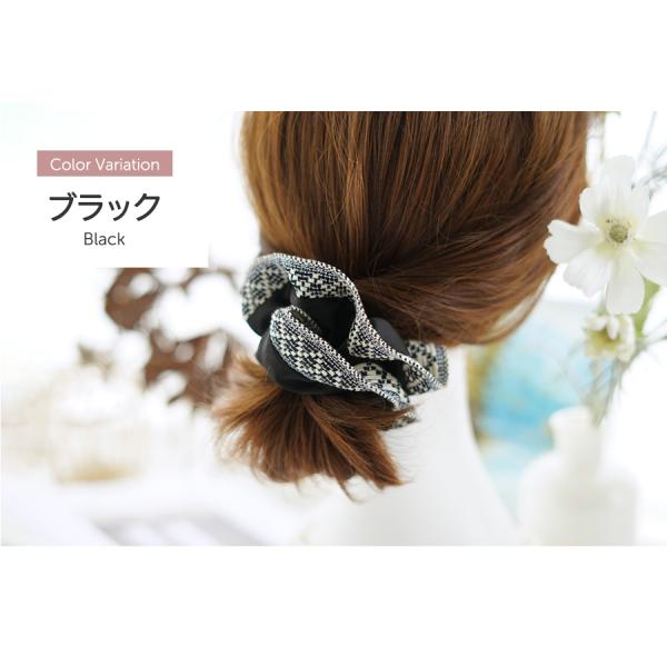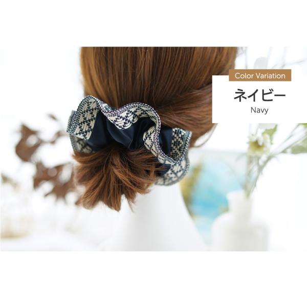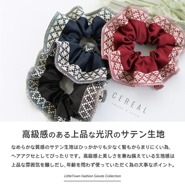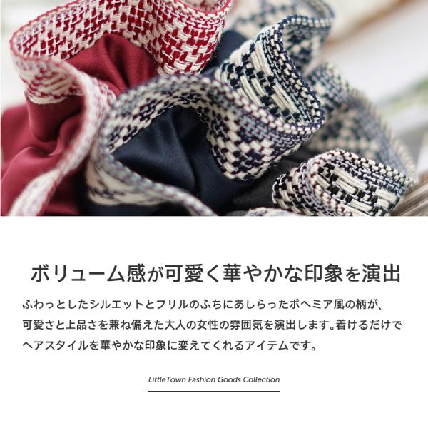 シュシュ ヘアアクセ サテン ボヘミア 柄 ヘアアレンジ アクセサリー ヘアゴム ボリューム フリル かわいい 可愛い カジュアル まとめ髪 レディース