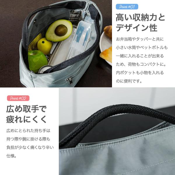 ファッションバッグのようなデザインのランチトートで、コーデにもすんなり馴染んでくれるシンプルでおしゃれなデザイン。