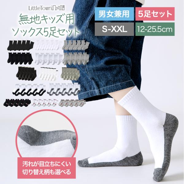 キッズ ソックス 子供 靴下 5足セット 12-22cm クルーソックス 男女兼用 ユニセックス ベビー靴下 キッズ靴下 女の子 保育園 幼稚園 小学生 女児用 スポーツ