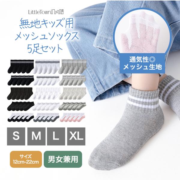 キッズ メッシュ 無地 ソックス 5足セット 子供 靴下 男子 男の子 女子 ショート ユニセックス クルー キッズ ベビー 保育園 幼稚園 小学生 パンダソックス
