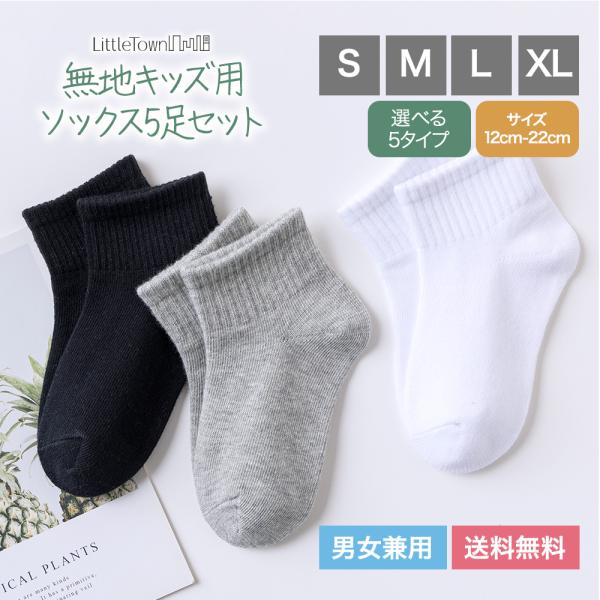 キッズ 無地 ソックス 5足セット 子供 靴下 男子 男の子 女子 女の子 ショート ユニセックス クルー スニーカー キッズ靴下 ベビー 保育園 幼稚園 小学生