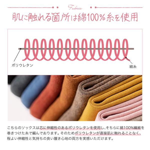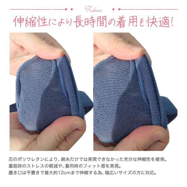 ※伸縮性の為に使用しているポリウレタン糸の上に面を巻き付けているような構造の為、実際に肌に触れる箇所は綿の糸です。