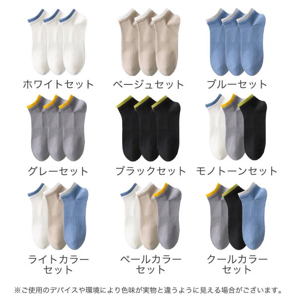 綿100% 表糸 メンズ スニーカーソックス 3足セット ショート アンクル丈 切り替え バイカラー 男性 くるぶし 綿 コットン 靴下 25cm-27cm 脱げない ずれない
