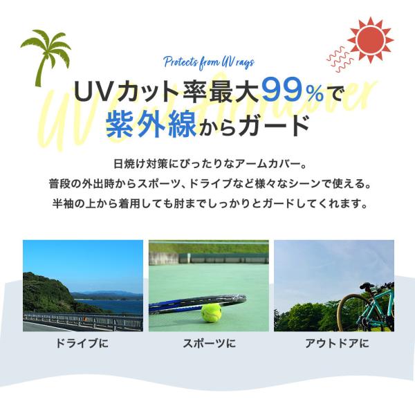 日焼け対策にぴったりなアームカバー。普段の外出時からスポーツ、ドライブなど様々なシーンで使えます。
