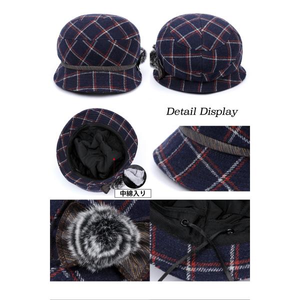 チェック キャスケット 帽子 ハット レディース uv 小顔 ウォーキング 深い ママ アウトドア 秋冬 保温 暖かい キャップ 防寒 ファー 毛玉 蝶結び
