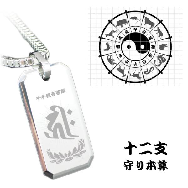 メンズネックレス SPZOD12 十二支守護本尊シリーズペンダント 守り神 超硬合金タングステン製トップ 鏡面仕上げ 角丸加工 レザーマーキング