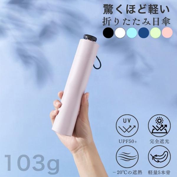 日傘 折りたたみ 超軽量 103g 完全遮光 晴雨兼用傘 レディース uvカット 100% 5本骨 UPF50+ 爆買