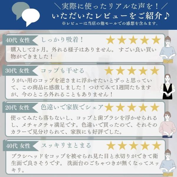 ・特徴:吸盤タイプの浮かせる歯ブラシスタンド。歯ブラシとコップを吊り下げて水切りが可能です。吊り下げて1本ずつ独立して浮かせることができる歯ブラシスタンドで接触もなく衛生的です。歯ブラシホルダーだけでなく、コップを蓋の代わりに被せることができるので、水回りで気になる埃や落ちた髪の毛から歯ブラシを守ることができます。吸盤で浮かせて吊り下げるので洗面台に接触することなく、歯ブラシを立てることができるので衛生的に保つことができます。